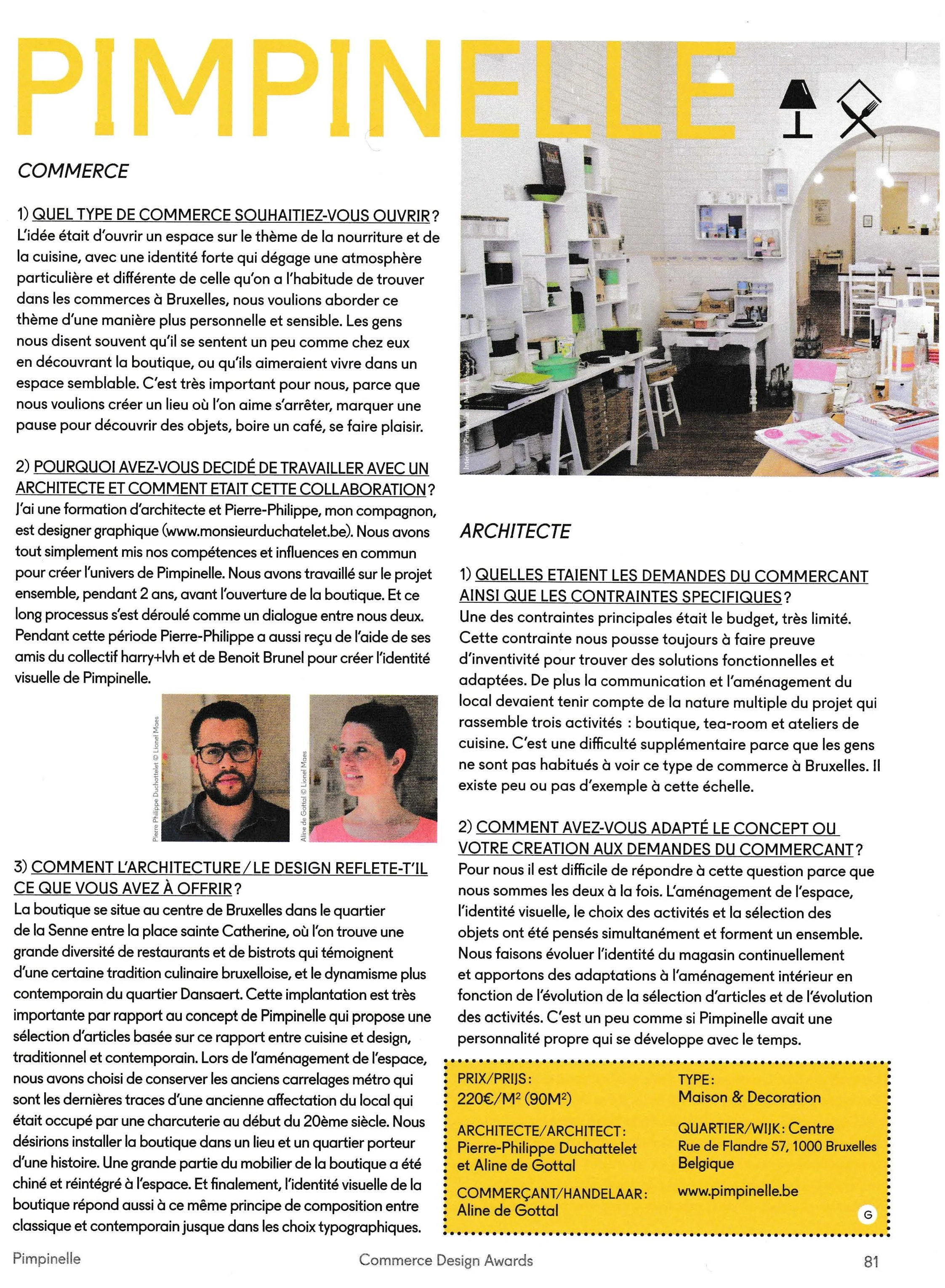 In 2013, Joya Brussels was selected as one of 10 winners of the Commerce Design Award in Brussels.