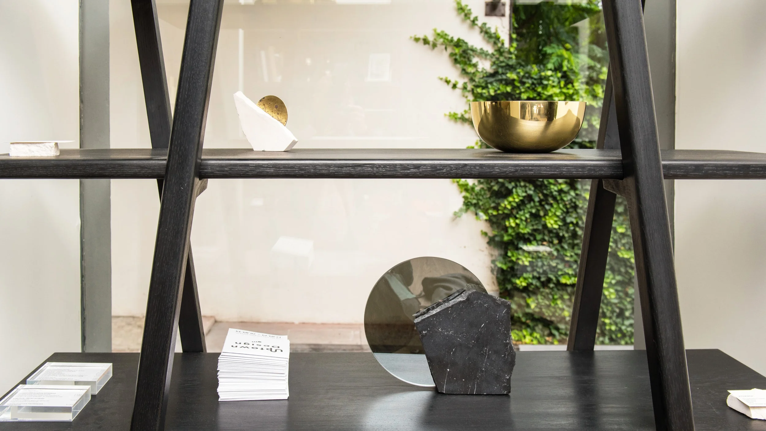 that were created with Obumex’ showroom in mind, both in terms of spaces and materials. Indeed, I used offcuts and damaged parts from their fabrication workshop and gave them a second life. I worked around these imperfections and highlighted them - through reflection and contrasts - to honor each piece’s specificity and story.